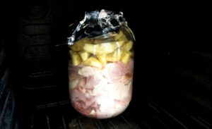 Помните, банку до конца заполнять не нужно, иначе сок от курицы будет вытекать. Обязательно оставьте пространство до горлышка.