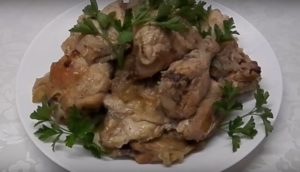 Простое и вкусное блюдо, которое готовили почти все хозяйки в советское время. В то время такой способ считался незаменимым, мясо получалось нежным, мягким и вкусным. Ингредиенты совсем простые, их немного, что не перегружает рецепт, хотя специи можно добавить по желанию. Мне нравится, когда пахнет только куриным мясом.