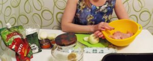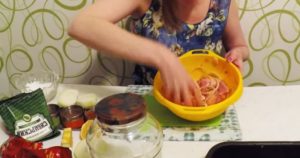 Мясо солю, перчу по вкусу, перемешиваю. Можно добавить другие приправы по вкусу.