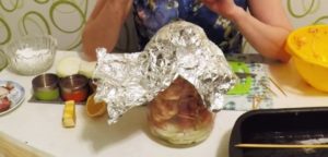 Если под рукой нет крышки для консервирования, воспользуйтесь фольгой.