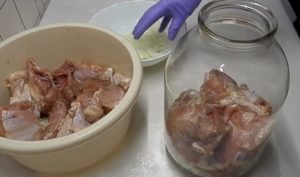 - следом за филе в банку пойдут голени и бёдрышки, именно из них выделяется больше всего сока