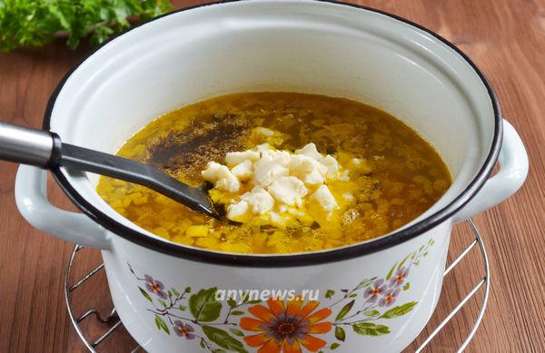 - Как только вы добавите плавленые сырки, следует тщательно мешать суп до полного их растворения. Бульон моментально приобретет приятный цвет и сырный аромат.